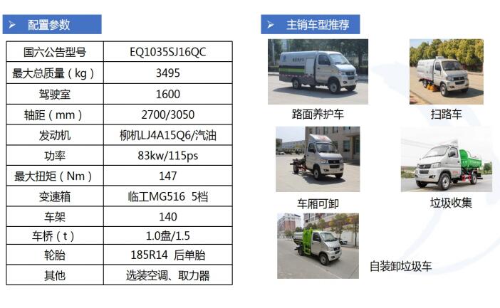 東風(fēng)小霸王系列環(huán)衛(wèi)車可以說涵蓋了目前幾乎所有的環(huán)衛(wèi)類車型:東風(fēng)小霸王車廂可卸式垃圾車、東風(fēng)小霸王掛桶式垃圾車、東風(fēng)小霸王密封自卸式垃圾車、東風(fēng)小霸王桶裝垃圾運(yùn)輸車、東風(fēng)小霸王自卸式垃圾車、東風(fēng)小霸王路面養(yǎng)護(hù)車、東風(fēng)小霸王掃路車等。
